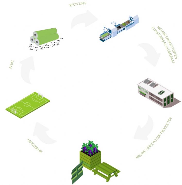 | Kunstgrasrecycling en hergebruik: zo ziet dat er in een ideale wereld uit, aldus Greenmatter. |