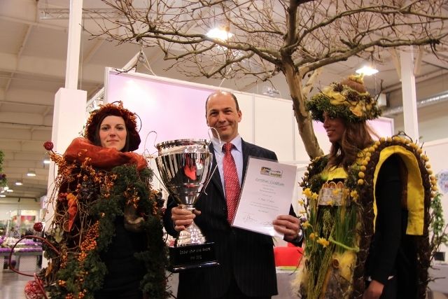 Tijdens de IPM in Essen heeft Van den Berk Boomkwekerijen (Sint-Oedenrode) met The Swing - een gebogen Platanus acerifolia - de Colour Your Life Award 2012 in de wacht gesleept. De prijswinnende The Swing, een natuurlijke parasol waarbij de stam niet in de weg staat, is een samenwerkingsproduct van Van den Berk en toeleverancier Van Roessel Vormbomen (Berkel-Enschot). Hans van Rijsewijk (commercieel manager Van den Berk) ontving uit handen van juryvoorzitter Egon Galinnis (directeur Messe Essen) en Jan Habets (directeur Plant Publicity Holland) de beker en bijbehorende oorkonde. PPH organiseerde dit jaar in samenwerking met de organisatie van IPM de 'Colour your Life Award IPM 2012'. Hierbij draait alles om de meerwaarde van het product. De achterliggende gedachte is dat een plant met een verhaal of een extra informatief weetje eerder zal worden verkocht, dan een product waar deze informatie bij ontbreekt. Het verhaal achter The Swing is dat deze boom door zijn bladerdek veel schaduw biedt en de boom naast het terras wordt geplant, waardoor men geen last van de stam heeft. Van Rijsewijk: "We hadden absoluut niet verwacht deze prijs te winnen, omdat de verhalen achter de plant van alle genomineerden zeer sterk waren. Het idee voor het concept The Swing is geboren in samenwerking met onze toeleverancier, vader en zoon Cees en Thijs van Roessel." De naam en de vorm van The Swing zijn inmiddels gepatenteerd en behalve de Platanus Acerifolia, brengt Van den Berk ook een Carpinus betulus onder dezelfde conceptnaam op de markt. "En er komt ook nog een derde soort, maar dat hou ik nog even geheim", zo liet een trots glunderende Van Rijsewijk op de IPM weten. Behalve de beker en oorkonde krijgt The Swing gratis media-aandacht via televisie en internet. Zo wordt de vormboom in Duitsland een aantal keren getoond op de commerciële zender Mo's Grüne Welt en binnenkort verschijnt er ook een filmpje op YouTube. De kwekers van de 'swingplataan', Cees en zoon Thijs van Roessel, waren zelf niet getuige van de bekroning van hun product. Cees was eerder in de week op de beurs in Essen en zoon Thijs was op skivakantie. Na het horen van het nieuws over de eerste prijs smste hij zeer verheugd vanuit Oostenrijk: 'Super, super, keimooi.' Het brons van de Colour Your Life Award 2012 kwam ook in Nederlandse handen en ging naar boomkwekerij Gova BV (Nispen) voor hun Laurus nobilis (Origin of beauty), met het verhaal over de laurier die aan de wieg van de huidige cosmetische industrie heeft gestaan en dat laurierolie het essentiële ingrediënt is van de eerste, meer dan 1.000 jaar oude, vaste zeep. Op nummer twee eindigde Downderry Lavendel van Helix Pflanzen (D.) met het verhaal 'de kleuren en vormen van deze 25 verschillende soorten zijn ware blikvangers'. Een gedeelde derde plaats, samen met boomkwekerij Gova, was er voor Bruns Pflanzen (D.) met '25 zeer bijzondere soorten die je niet vaak tegenkomt'. Uit alle inschrijvingen waren twintig boomkwekerijproducten uit zes verschillende landen genomineerd. Een vakjury en een kleine 700 bezoekers van de IPM hebben de twintig genomineerden beoordeeld.