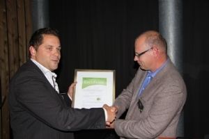 | | Ronnie Kersten (links) ontvangt het RAG-certificaat van Rob Scholman. |