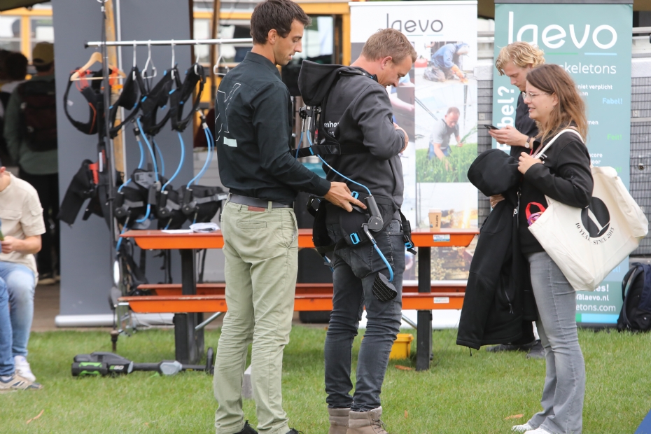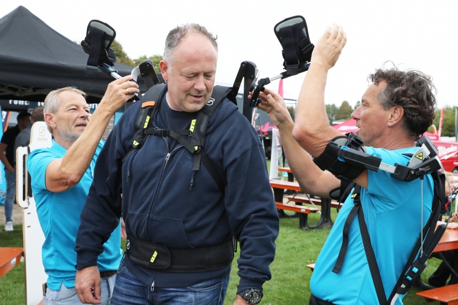 Zelf kijken of een exoskelet wat voor je was, kon ook. De aanwezigen leveranciers op het exoskelettenplein waren: SpanSet, Skelex, ExoSustain, Laevo en De Wild.