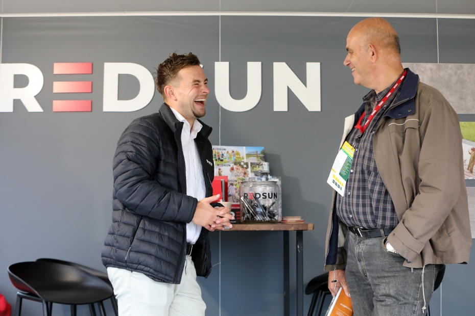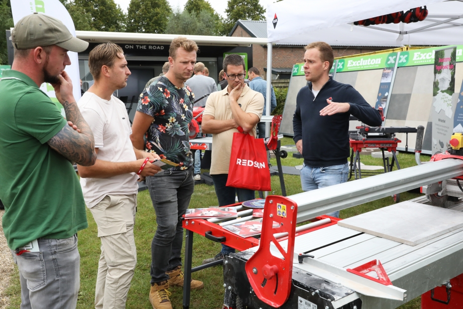 Pret bij Redsun. Redsun zette de dag volledig in op de promotie van Cerasun, een tegel met een vaste verbinding van keramiek en beton. De tegels combineren een slijtvaste keramische toplaag met een sterk verdichte betonkern.