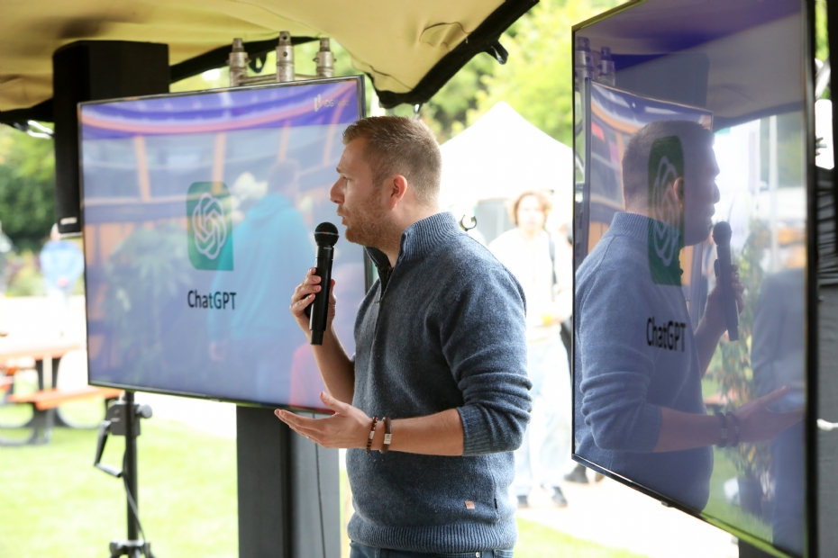 Cor Simon van OntwerpAcademie trok veel bekijks met zijn lezing over ontwerpen met AI.