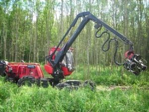 Machinepark Het bedrijf uit Elspeet heeft vier van dergelijke machines om bossen te onderhouden en daarnaast nog diverse andere machines. 'Met de aggregaat die er nu aan hangt kunnen we bomen tot 50 centimeter diameter snel en eenvoudig verwerken. Bij dikkere bomen hangen we er een andere aggregaat met andere zaag aan.' Op die manier kapt Van den Nagel jaarlijks zo'n 150.000m3 bos. 'Op dit perceel met essen hebben we in een dag zo'n 800 bomen weten te vellen.'