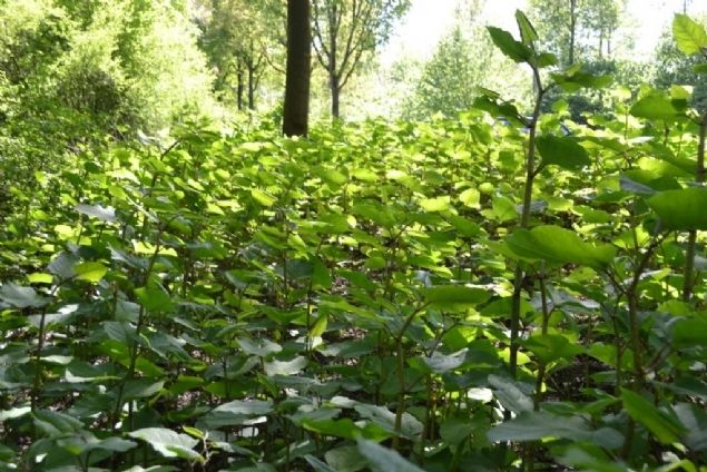 | | Situatie voor aanvang: genoeg Japanse duizendknoop om op te testen |